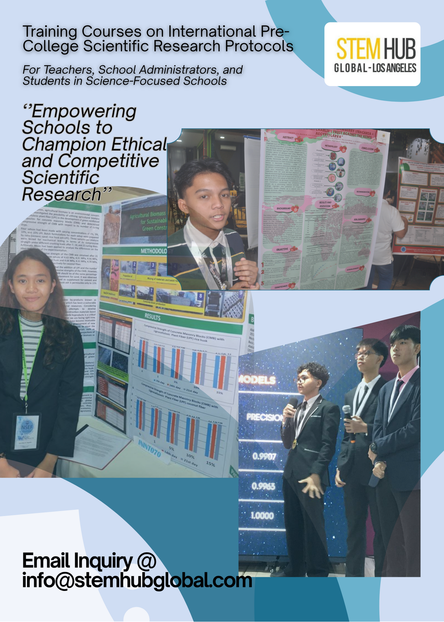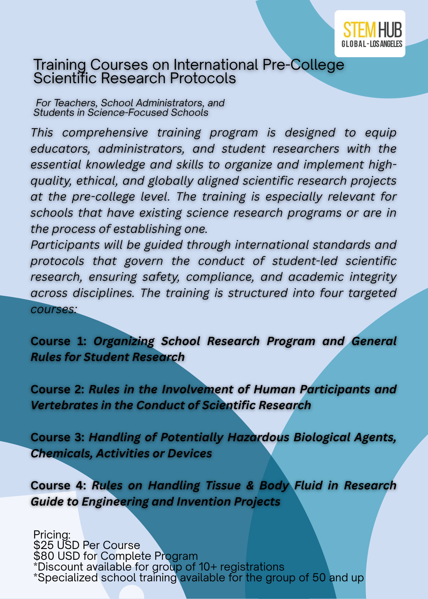 This comprehensive training program is designed to equip educators, administrators, and student researchers with the essential knowledge and skills to organize and implement high-quality, ethical, and globally aligned scientific research projects at the pre-college level. The training is especially relevant for schools that have existing science research programs or are in the process of establishing one.